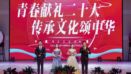 为深入学习贯彻党的二十大精神,切实将中华优秀传统文化全方位融入学校教育教学全过程,引领学生传承和弘扬中华优秀传统文化,培育和践行社会主义核心价值观,校团委于2023年5月25日下午17:00在学校大礼堂组织开展“青春献礼二十大·传承文化颂中华”文艺汇演,以艺术创新表达融合文化价值,并以此为契机祝愿2023届毕业生们前程似锦,万事胜意。