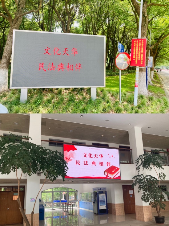 2023年《民法典》宣传月期间,学校以电子屏、橱窗、学校官网网站浮窗等形式,开展了形式多样的学习使用《民法典》氛围宣传活动。