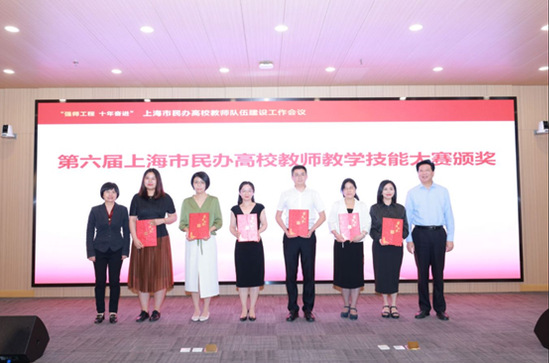 6月6日,上海市民办高校教师队伍建设工作会议暨第六届上海市民办高校教师教学技能大赛颁奖典礼在联合国教科文组织教师教育中心世承讲堂隆重举行,我校校长叶才福,副校长龚春蕾及第六届上海市民办高校教师教学技能大赛的获奖教师应邀出席了颁奖典礼。