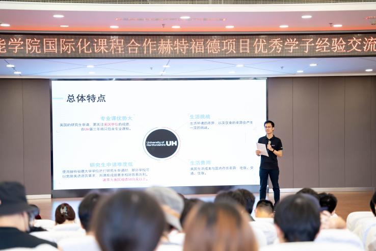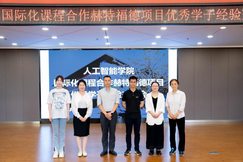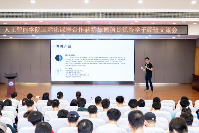 2023年6月8日中午,人工智能学院赫特福德项目优秀学子经验交流会在晖华楼报告厅召开。出席本次会议的有校国际交流处副处长夏智源,教师赵诗佳,人工智能学院国际项目顾问林军,党总支书记赵科,副院长吕博,国际项目助理鲍仕淇。我院2019级网络工程(国际课程合作)专业学生耿逸航同学就赫特福德出国学习进行交流汇报。本次交流会由吕博副院长主持。