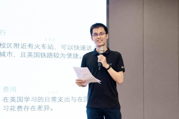 随后由耿逸航学长向大家介绍留学经验,主要从同学们普遍关心的留学优势与挑战,课程学习差异,生活感受以及研究生申请四个方面进行了分享:
