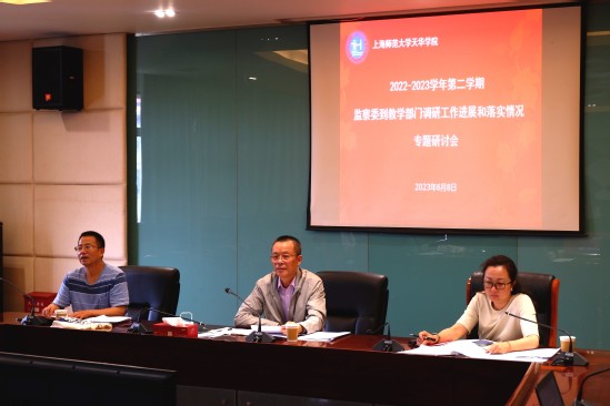 (总校监郭伟奇、校监史文和副校长龚春蕾听取教学部门工作汇报)