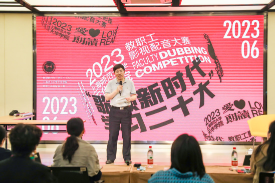 曹卫在点评及致谢环节中对本次大赛的成功举办表示热烈祝贺,并对辛勤筹备大赛的团队以及到场的嘉宾评委们表达了衷心感谢。曹卫指出,过去两年,校工会成功申报了上海高校教师思想政治建设精品项目,打造教职工特色“午间课堂”,而本次影视配音的舞台正是这样一个展示自我、提升自我的课堂,对进一步提升教师人文修养和艺术情趣起到推动作用。