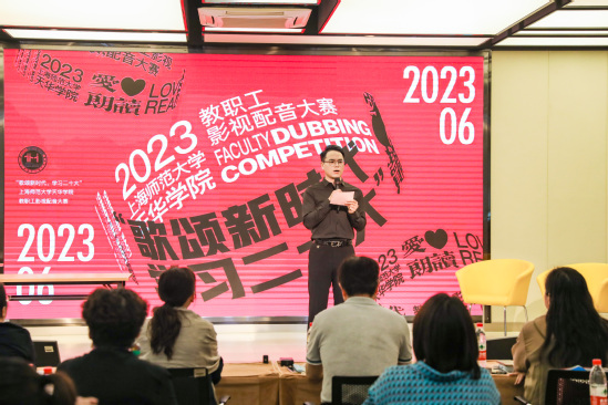6月9日下午,“歌颂新时代,学习二十大”上海师范大学天华学院2023“爱朗读”第二届教职工影视配音大赛于图书馆多功能报告厅隆重举行。本次大赛由学校工会和图书馆联合举办。学校副校长、人事处处长、工会主席吴国兴,人事处常务副处长、工会常务副主席曹卫,上海交通大学医学院工会副主席徐汝明,华东师范大学工会副主席杨素华,上海外国语大学贤达经济人文学院工会主席郑虹,上海电力大学工会主席尤文静等高校工会领导出席活动现场。比赛由初等教育学院教师何昆仑主持。
