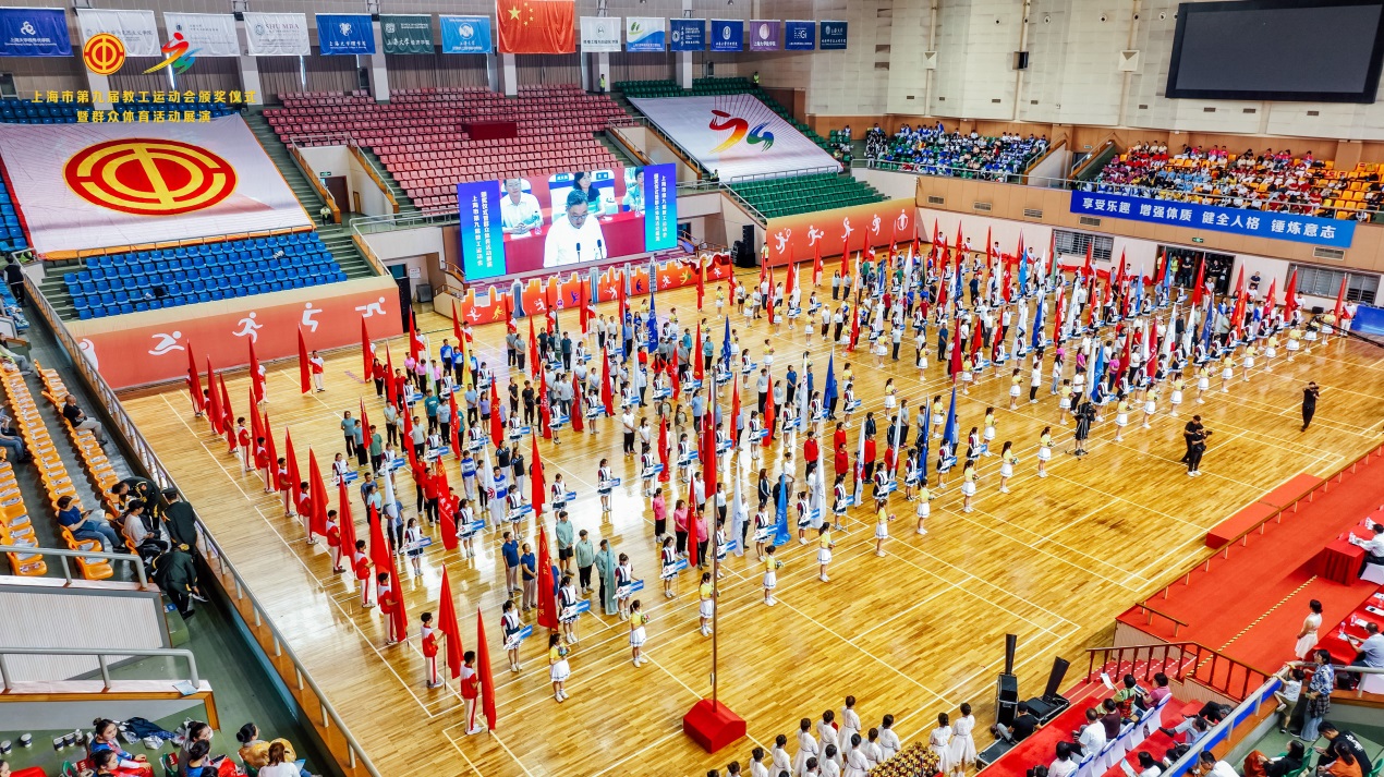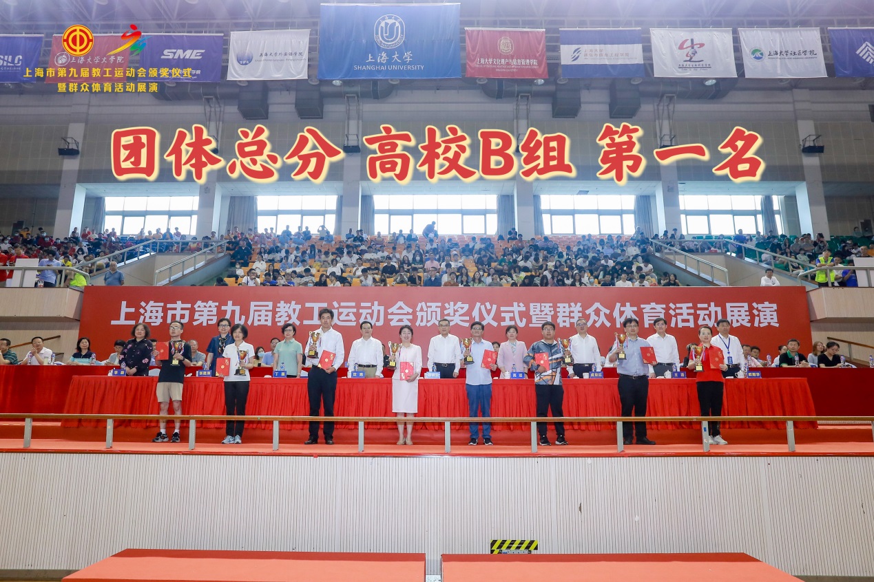 6月18日下午,上海市第九届教工运动会颁奖仪式暨群众体育活动展演在上海大学宝山校区隆重举行。89家来自各高校、区(中职)、两委机关及直属机关单位共2000余人参加本次活动,学校工会主席吴国兴、工会常务副主席曹卫和13位运动员代表出席活动。