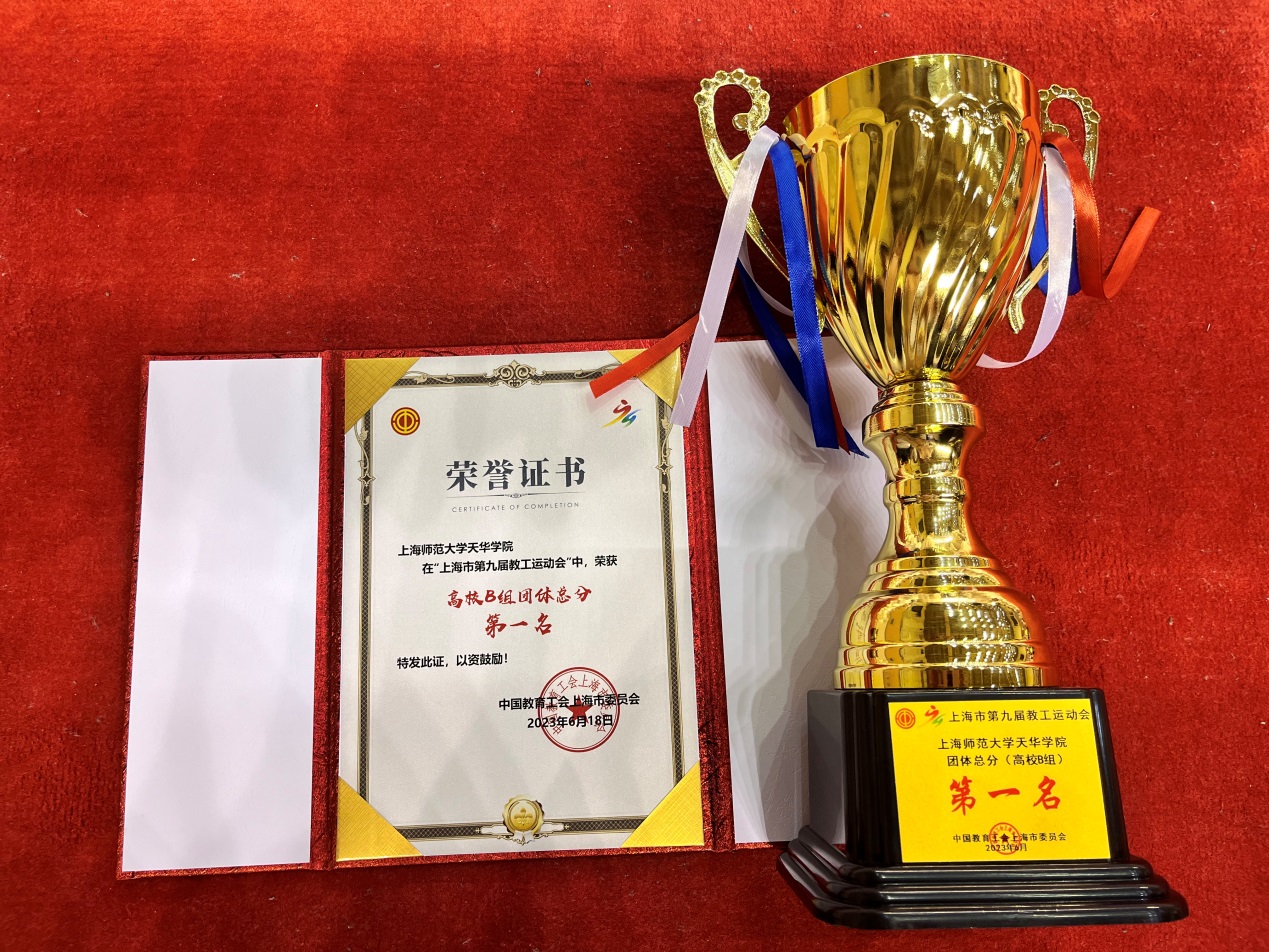 本届运动会于2021年启动,共设18个大项,三年来,我校教职工共计244人次参与了14个项目的比赛,包括健步走、趣味项目、龙舟、气排球、足球、篮球、羽毛球、象棋、乒乓球、网球、田径、游泳、广播操、校长杯系列项目等,最终总成绩在所有参赛高校B组中排第一,我校工会常务副主席曹卫代表学校领取团体第一奖杯,学校工会荣获优秀组织奖,张旭、徐风帆荣获本届运动会“中国银行杯”体育达人奖。