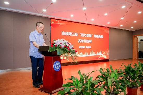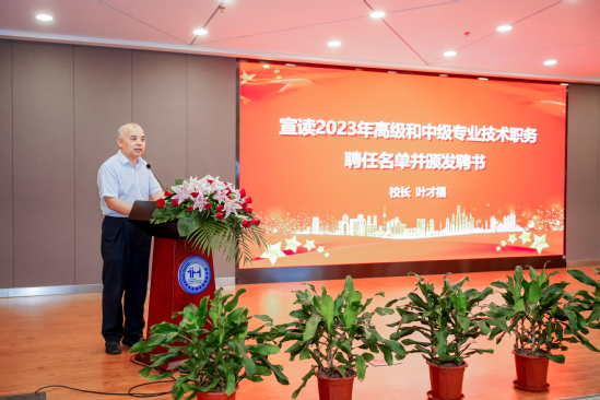 会上,党委书记陆建非宣读2023-2025年度教学名师名单,并给4位一级教学名师、9位二级教学名师、29位三级教学名师和52预备级教学名师代表颁证;校长叶才福宣读2023年高级和中级专业技术职务聘任名单,给3名教授,21名副教授,31名讲师代表发放聘书;总校监郭伟奇宣读第三批“活力课堂”星级教师名单,并给17位“活力课堂”星级教师授牌。
