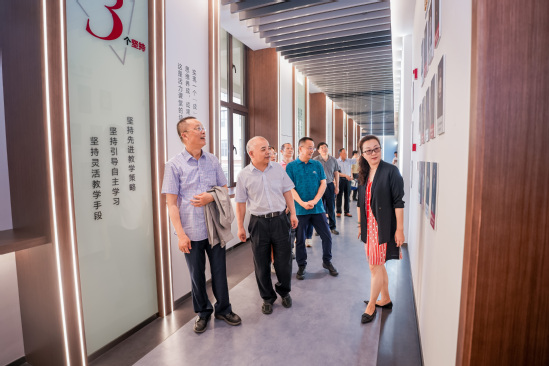 会前,全体校务委员会成员参观了新落成的天华学院“活力课堂”成果展示馆。执行董事长石伟平亲自为展示馆揭幕,副校长龚春蕾简要介绍建设思路。展示馆共800平方米,包括了研讨室、多功能厅、观摩教室和展示走廊4个区域,记录了“活力课堂”在天华发展过程中的里程碑事件和取得的一些经验成果,展示了学校教师在市级教学比赛中获得的奖项和天华学子在重要学科竞赛中取得的荣誉以及学校分三个批次评选产生的68名“活力课堂”星级教师照片,是一个高规格、现代化、开放型的教学研讨、示范、学习和观摩的公共空间。展示馆将于下学期9月正式投入使用,将成为天华活力课堂、智慧教学的一个新高地、新地标!