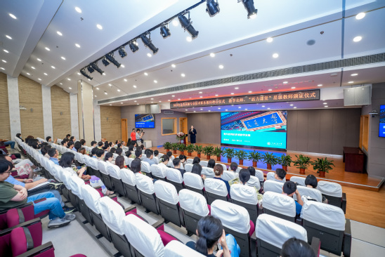 学校一直以来高度重视教师专业发展,尤其是青年教师的专业发展。青年教师是学校发展的生力军,是教育教学创新的重要力量,更是学校的未来。近几年来,我校青年教师在上海高校青年教师教学竞赛中也绽放异彩,频频获奖。本次仪式上,学校还特别邀请了国家级高层次青年人才、国家级/上海市教学成果奖、第五届上海高校青年教师教学竞赛特等奖、第六届全国高校青教赛工科组一等奖(第一名)、上海市五一劳动奖章,上海交通大学电子信息与电气工程学院、计算机科学与工程系教授高晓沨作专题报告。高晓沨以青年教师的多维教学发展为主题,结合自身的论文成果、研究方向、授课方式以及所带领科研团队的教学改革项目、教学研究成果和教学技能竞赛获奖情况,指出组建国际大赛培训营的重要性。并以《计算机科学导论》作为案例,高晓沨剖析了课程设计、教学目标与内容,强调了要以学生的需求为导向,以效果为核心,层次化、精细化作业设计,翻转课堂,让学生在课程中真正学有所成。同时,为了凝聚课堂集体感,增进师生亲密性,高晓沨教授以人文为情杯,促进教学相长,树立了品牌文化。她指出教师可以通过参加教学竞赛,拓展视野,贴近学生的思维方式,从实践中学习教学理念,提升教学技法,提高学生对课程的教学评价。