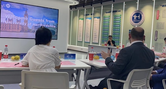 2023年6月28日,英国赫特福德大学物理、工程与计算机学院院长Dr. Dan Mccluskey,物理、工程与计算机科学学院国际、社区、合作副院长,教学与学生工作副院长 Felix Zhu,上海办公室代表Yvonne、Emily,上海师范大学徐雄伟教授到访天华,共商两校合作项目。我校校长叶才福,副校长龚春蕾、吴国兴,工会常务副主席曹卫,人工智能学院院长凌旭峰、副院长吕博,国际交流处处长胡珍、副处长夏智源共同接待。