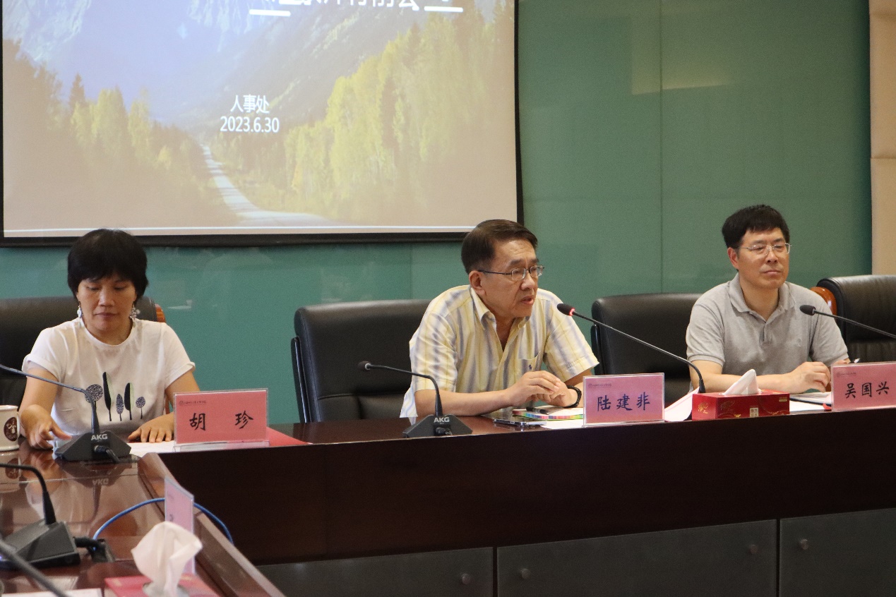 6月30日下午,学校在明华楼五楼会议中心举行2023年天华学院教师海外研修行前会。党委书记陆建非、副校长吴国兴、人事处常务副处长曹卫、国际交流处处长胡珍、副处长张云,以及7位赴美国北亚利桑那大学就读博士的教师、6位赴新加坡南洋理工大学就读硕士的教师、辅导员、2位赴美国韦伯州立大学就读硕士的辅导员和1位赴中国香港浸会大学就读硕士的教师出席本次会议。副校长吴国兴主持会议。