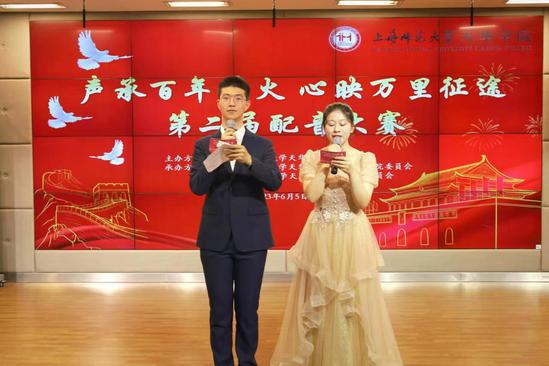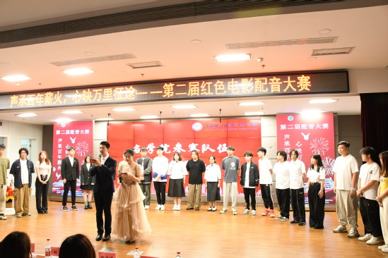 紧接着第一轮比赛正式开始,各学院代表队为《辛亥革命》《建国大业》《觉醒年代》等多部优秀红色电影深情配音,用声音讲述红色故事,用情感致敬革命精神,让更多人铭记历史长河中革命先辈们永垂不朽的革命光辉。