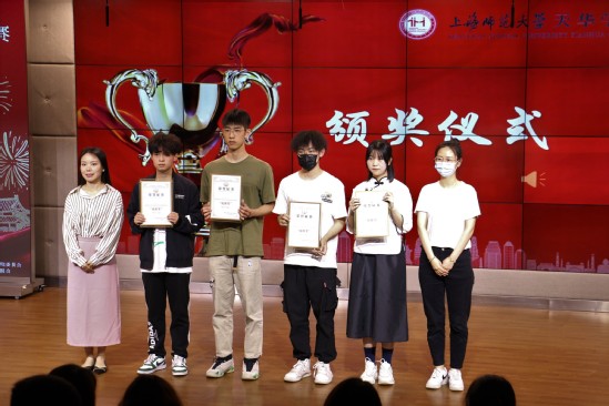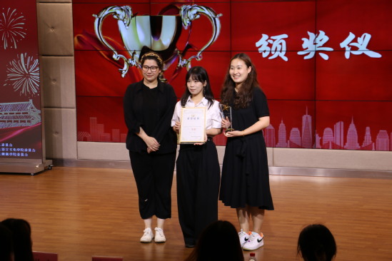 由上海师范大学天华学院学保处副处长、校团委书记杨央老师和学前教育学院分团委书记张子璠老师为学前教育学院颁发一等奖。