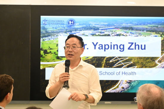 接下来,由美国威斯康星协和大学分管国际项目主任Damian Wyman博士讲话。首先,他围绕学校规模、校园文化、院系设置、师资情况、就业前景等多个方面向同学们介绍了CUW的具体情况,并表示非常的欢迎大家去到CUW进行学习与交流,愿和所有老师们一同追求更卓越优秀的教学成就,希望能够为健康学院的学子们提供更有价值、更为丰富的学习资源以及优秀的师资力量。