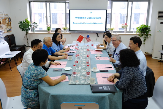 2023年9月13日,美国威斯康星协和大学副校长Dr. William Cario博士,国际项目主任Damian Wyman博士,海外项目协调员MeiMa到访天华,共商两校合作项目、并举行2022级康复治疗学(中外合作办学)专业美方见面会。校长叶才福、健康学院院长祝亚平、国际交流处处长胡珍、国际交流处副处长梁杰,健康学院副院长刘敏,康复治疗学(中外合作办学)专业主任徐欣,国际交流处教师赵诗佳以及康复治疗学专业教师王苏蒙共同接待。