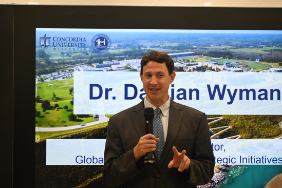 (美国威斯康星协和大学分管国际项目主任Damian Wyman博士讲话)