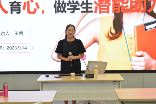 新时期的教师,不仅承担着教书育人传授知识的任务,更要在课堂和生活中,关注学生的心理健康。9月14日,特别邀请了健康学院副院长王茜老师,做了一场《育人育心,做学生潜能助力者》专题沙龙,向新教师传达了“心育”的重要性和必要性。心育,作为三全育人的重要举措之一,是每个教师在教学过程中都要关注的主题。80%的心理健康教育工作,是融入常态化教学工作中的,通过课堂教学,课中对话,课后关注,引导学生健康积极的心态。而剩下的20%是需要教师通过关注细节、通过专业知识、通过倾听理解,尽量更早的发现问题,干预问题,解决问题,使学生更安全更平稳的跨过一个个“坎”,逐步恢复到有希望有活力的健康状态。王茜老师分享了一些手段和方法,帮助新老师能更有技巧地面对学生心理问题,同时也作为新教师们的保障后盾,给予了坚定有力的支持和帮助。
