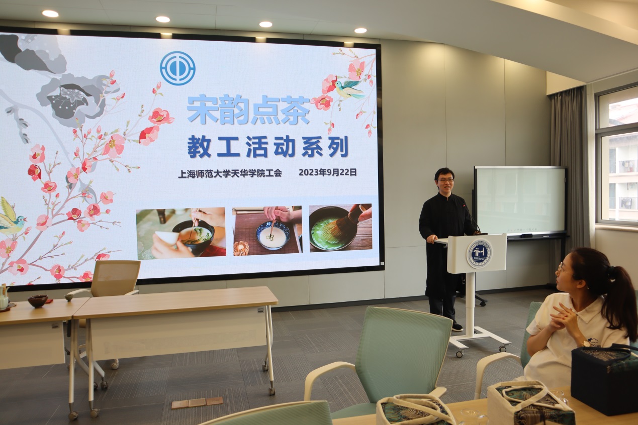 为促进优秀传统文化传承,丰富教职工文化生活,9月22日下午,学校工会于在明华楼五楼远程教学中心开展了教工活动系列之“宋韵点茶”茶艺体验活动。本次活动特邀国家高级茶艺师许中翾主讲。