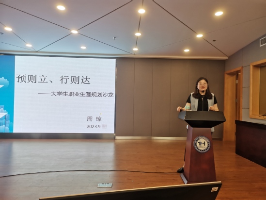 在当前大学生就业面临前所未有的挑战的时代背景下,为了帮助学生对未来就业进行一些必要的准备,9月26日,学校特别举行第11期“学术星空”。本期活动特邀人力资源管理师二级,具有18年人力资源管理经验,并曾任上市公司人力资源总监的周琼老师,为学生带来一场别开生面的职业生涯规划的分享。近500名同学积极报名参加了此次活动,教师工作部副部长李艳艳主持。