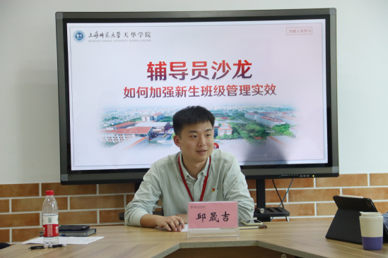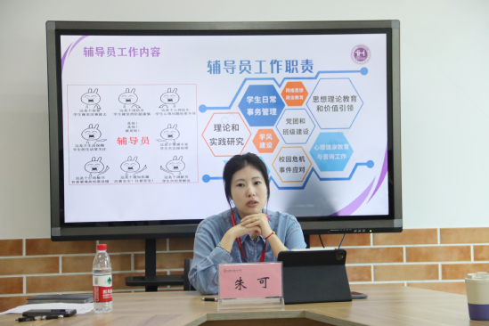 2023年10月26日中午,学期辅导员沙龙第一讲在图书馆第二研讨室进行,2023级新生辅导员已经新入职的正副辅导员参加。活动由学保处常务副处长包静波主持,由2023级新生辅导员代表朱可和邱晟吉主讲。