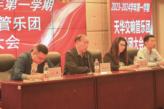 为扎实推进天华交响管乐团建设,对新发展阶段乐团工作进行再部署、再推动,10月25日下午4:30,乐团在晖华楼小剧场召开全团大会。乐团顾问秦尚修,校学保处副处长兼团委书记杨央,团委副书记沈捷、王晓亮参加会议。