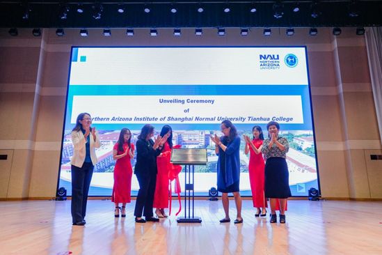 仪式当天,两校领导及外教一同上台为机构正式揭牌,这不仅代表着天华北亚利桑那学院的正式落成,也意味着两校合作进入崭新的历史阶段。