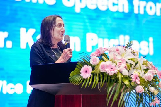 北亚利桑那大学执行副校长兼教务长Dr. Karen Pugliesi向中外合作办学机构的同学们介绍了北亚利桑那大学的发展历史和具体情况,她强调了天华学院北亚利桑那学院的建立对于两校合作的重大意义和深远影响。并对各位同学的发展提出了殷切的希望。