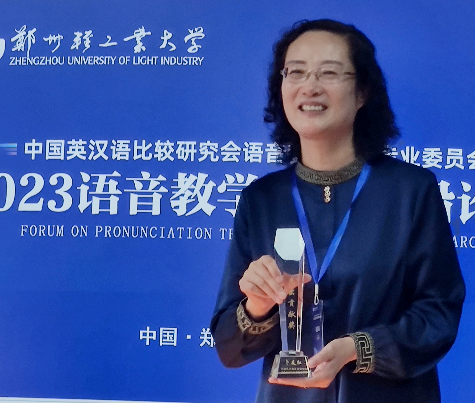 在刚结束的中国英汉语比较研究会语音教学研究专业委员会2023年高端论坛上,我校初等教育学院卜友红教授被中国语音教学研究专业委员会授予“杰出贡献奖”。