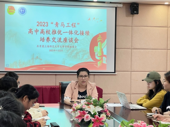 2023年11月2日,为进一步加强上海市各优秀高中毕业生推优一体化进程,校团委组织召开了2023级“青马工程”高中高校推优一体化学生座谈会。团委书记杨央参加会议并向与会的25名学生了解了在市、区级共产主义学校的相关学习情况以及对大学未来学习生活的规划。