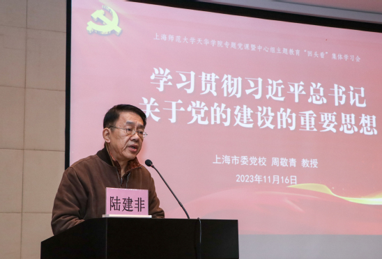 11月16日上午,学校党委在明华楼五楼报告厅开展干部党员理论辅导报告会暨中心组主题教育“回头看”集体学习会,特邀上海市二十大专家宣讲团成员、中共上海市委党校周敬青教授作《学习贯彻习近平总书记关于党的建设的重要思想》主题报告。学校党委中心组成员、二级学院党总支书记、基层党务干部、思政课教师及学生党员代表参加会议。会议由党委书记陆建非主持。