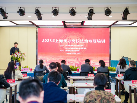 11月9日、10日, 2023年上海民办高校法治专题培训会在学校图书馆报告厅隆重举行。这是在全市进一步学习贯彻党的二十大精神大背景下,在《中华人民共和国民办教育促进法》实施六周年之际,《民办教育促进法实施条例》颁布两年多来,新时代民办教育分类管理举措全面落地的同时,在本市第三次在民办高校举行的相关培训会。