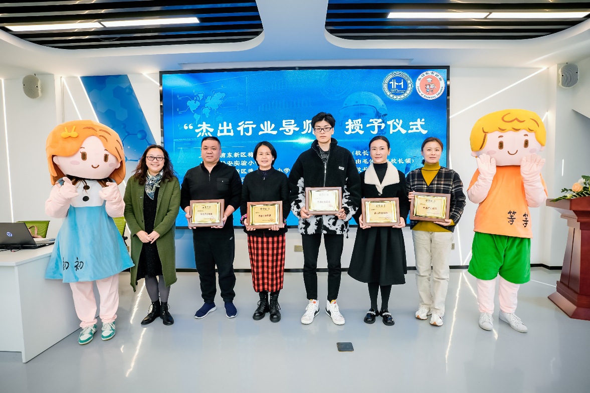 上海师范大学天华学院副校长龚春蕾为上海市浦东新区梅园小学毛燕菁校长、上海市静安实验小学沈文玮校长、上海市浦东新区德州二村小学徐巍炜校长、上海市徐汇区江南新村小学盛雪军校长、上海市嘉定区娄塘学校樊波校长、上海师范大学期刊社副编审、《现代基础教育研究》编辑部主任孙珏颁发“行业杰出导师”荣誉称号。