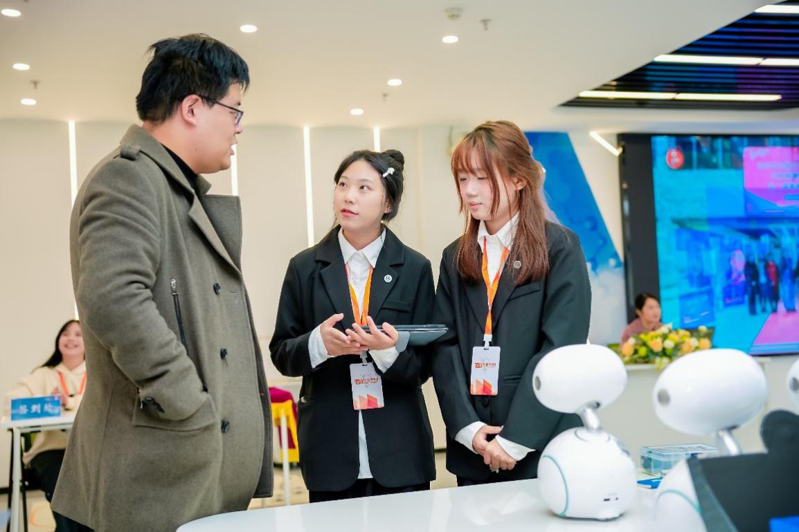 会议的另一大特色便是学生志愿者组成的“人工智能宣讲团”向嘉宾们讲解了各类小机器人的使用,生动丰富的讲解和熟练的现场展示,博得了与会嘉宾的阵阵赞叹,体现了天华学院小学教育师范生较高的人工智能素养和应用能力。