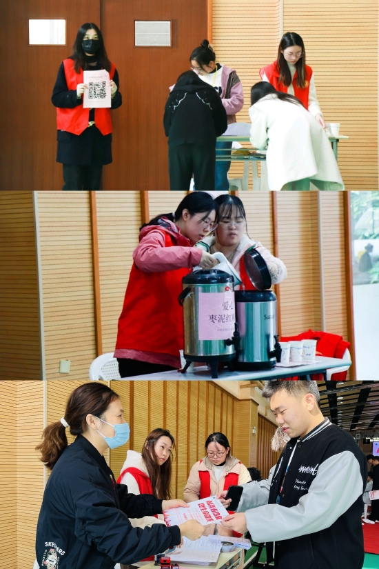 活动开始前,青年志愿者们提前做好献血现场布置工作。在活动现场,医护人员到达指定献血地点,校志愿者积极引导参与无偿献血的同学们有条不紊地填表、登记、化验、测血压、献血。献血结束后,志愿者们带领献血的同学们去到休息区。学校一如既往的为每一位参加献血的同学提供红糖水、“爱心大礼包”等营养补给品,帮助补充体力,为同学们提供了贴心的服务。