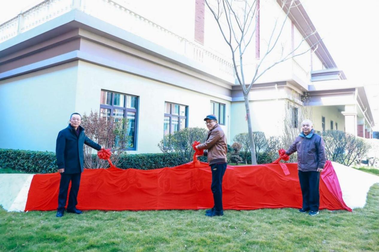 (陆建非书记、叶才福校长、郭伟奇总校监为学前教育博物馆揭幕)