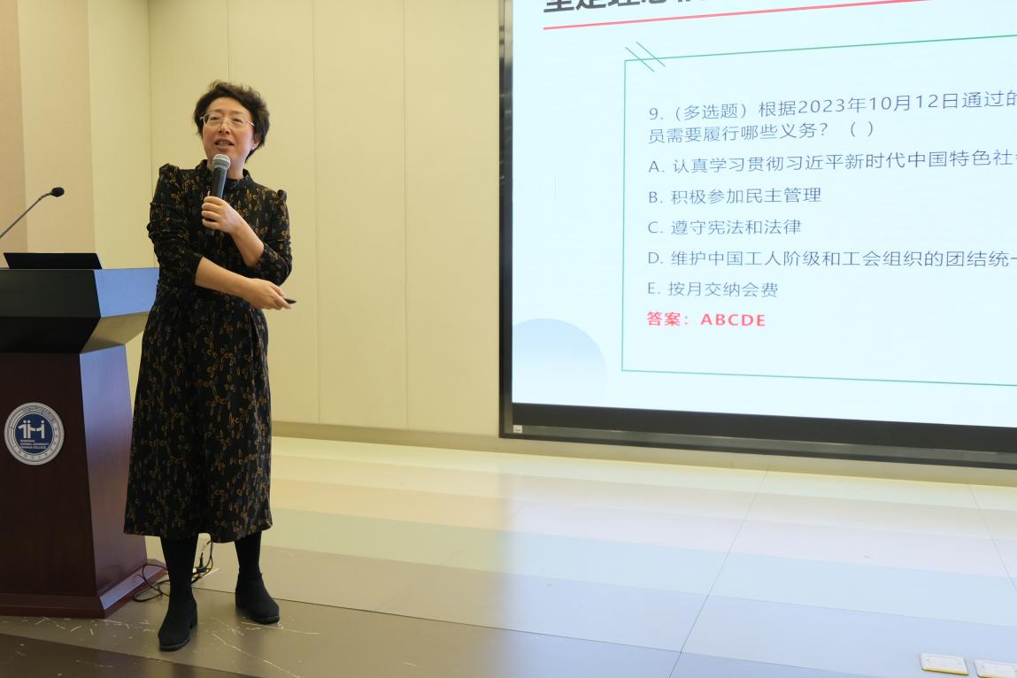 为深入学习贯彻习近平总书记关于工人阶级和工会工作的重要论述,工会主席、人事处常务副处长曹卫为大家解读工会十八大精神要点,旨在深刻领会、融会贯通、对标对表,准确把握大会提出的新要求、新思路和确定的新目标、新任务,并通过问卷星发放了《中国工会十八大知识问答“答题加油包”》,通过会议要点的精读学习,在女教授女干部联谊会层面掀起我校学习宣传贯彻工会十八大精神的新热潮。