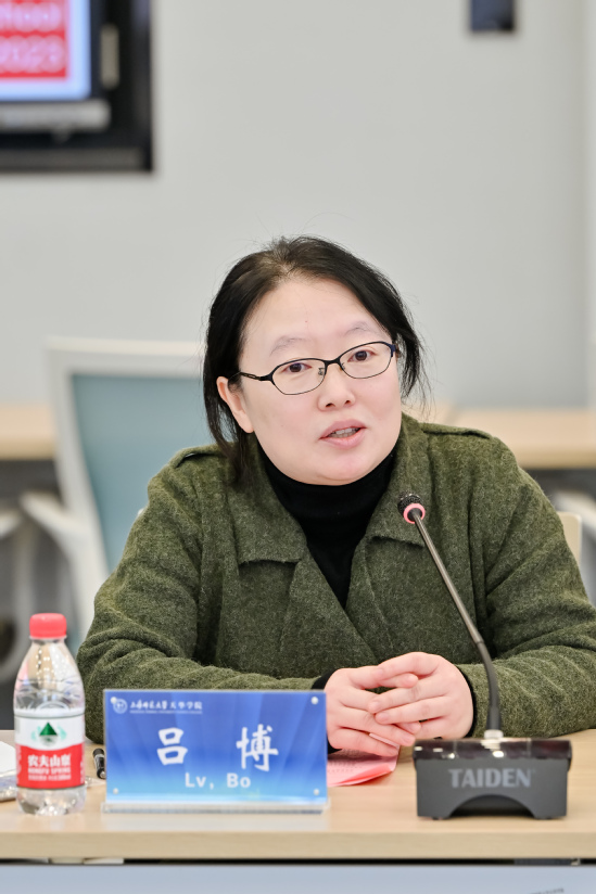 (图片五:人工智能学院副院长吕博介绍两校合作情况)