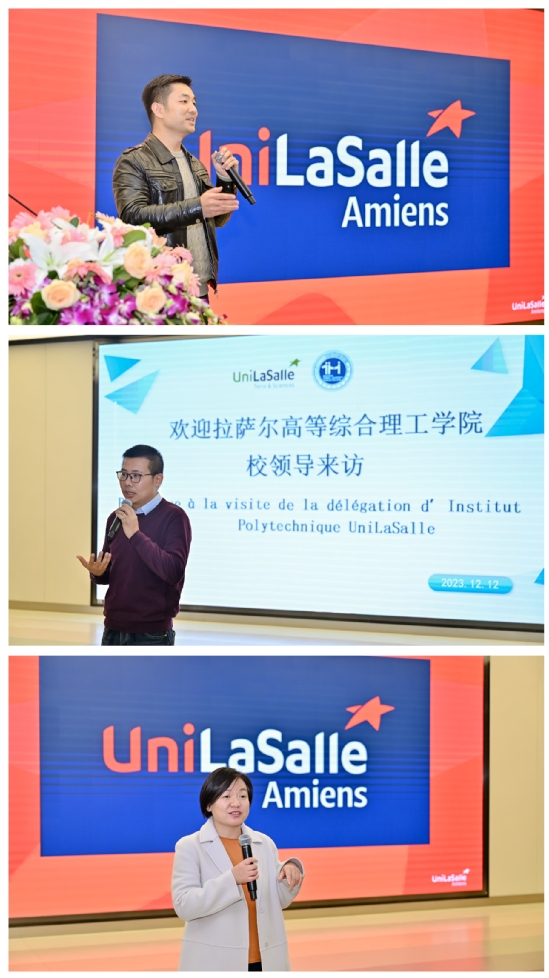 随后,亚眠校区校长Jérôme FORTIN先生、亚眠校区教务院长Augustin MPANDA先生依次发言。在中法建交60周年的大背景下,两校之间的合作恰是两国合作的缩影,而且天华学院是拉萨尔综合理工学院在上海唯一合作伙伴,从而强调了与天华合作的重要性。他们希望两校在前期成功愉快的合作基础上,未来可以开展更加全面多样性的交流,积极鼓励合作形式从教学,扩展到科研领域。