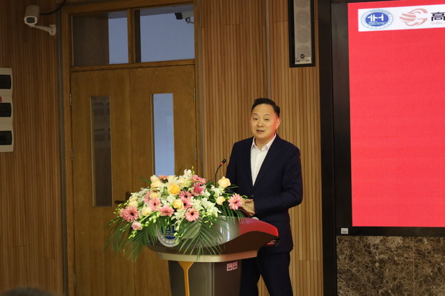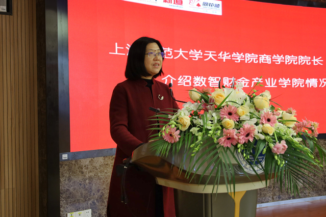龚春蕾副校长代表学校致辞。龚校长指出数智财金产业学院的创建为高水平应用型本科高校建设提供了平台承载和实践路径,把企业一线需求与高校教学资源配置高度融合,把社会对人才的需求,通过产教融合通道转化为学校教学标准,把新科学、新技术实时融入高校教学内容,这就是产业学院成立意义的最高体现。建设产业学院是贯彻国家战略需要、促进高等教育与地方经济协同发展,培养现代企业亟需高水平应用型人才的重要举措。龚春蕾提出学校在未来专业布局、现有专业优化、人才培养和师资队伍锻炼等方面,要对标国家及地方产业经济发展特点、瞄准“四新”经济发展中的人才培养需要,积极孵化培育产教融合项目,开拓校企合作视域及领域。学校将为数智财金产业学院提供坚实的资源支持及管理保障,努力与企业一同建成“共建、共管、共享”的校企协同育人新战略,凝聚校企各自优势,在人才培养、社会服务等方面开启更深层次合作,打造现代产业学院的优质典范。