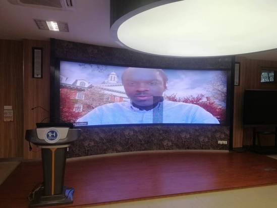 接下来伊利诺伊州立大学数学系副主任Professor Papa Amar Sissokho 通过视频发表了精彩的讲话并向新生们致以开班问候。Professor Sissokho讲述这项持续多年的合作项目为双方在教学和学术上的交流提供了良好机会,并希望同学们能持续从中受益。他也将来访天华,进行专业授课,与同学们近距离交流。