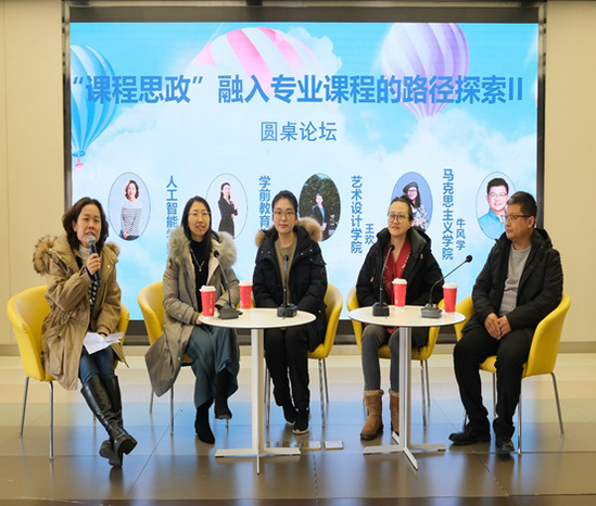 12月20日11点30分,图书馆四楼报告厅举行第9期“课程思政”论坛,活动继续采用圆桌论坛形式,邀请分别来自四个二级学院的教学名师做嘉宾,他们是艺术设计学院的王欢老师、学前教育学院的岳远洋老师、马克思主义学院的牛风学老师、人工智能学院的朱姗老师,教师工作部副部长李艳艳做主持。活动深受大家喜爱,20余名教师积极参加了活动。