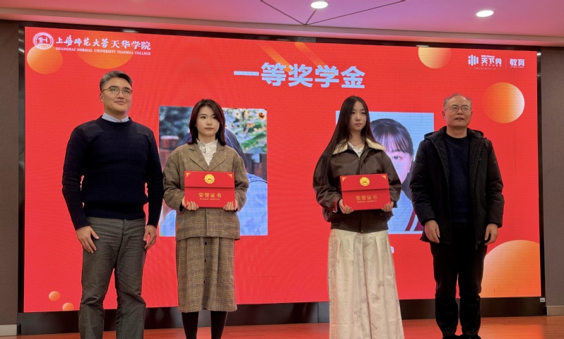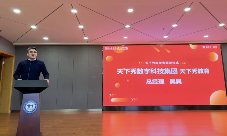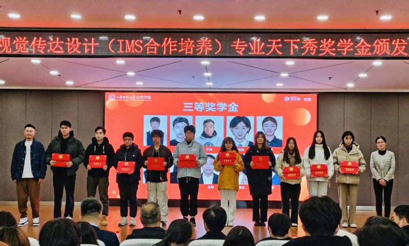 12月28日下午,由我院与天下秀数字科技集团(以下简称“天下秀教育”)共同举办的“上海师范大学天华学院艺术设计学院视觉传达设计(IMS合作培养)专业2022-2023学年奖学金颁奖典礼”在我校晖华楼报告厅举行。