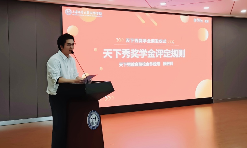 天下秀教育事业部院校合作经理殷宏科向同学们讲解了专业奖学金评选标准介绍,向获奖的同学们表示祝贺,并鼓励其他同学再接再厉。