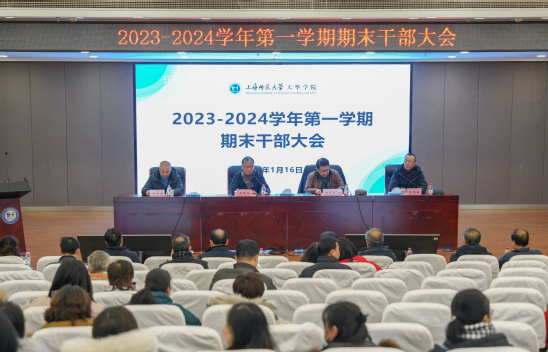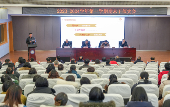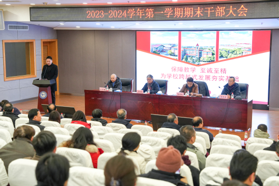 1月16日上午,学校在晖华楼报告厅召开2023-2024学年第二学期期末干部大会,总结各条线重点工作,交流分享经验成果。学校执行董事长石伟平、党委书记陆建非、校长叶才福、总校监郭伟奇出席会议,全体校务委员会成员、中层以上干部、二级学院正副院长、职能处室正副处长、党总支正副书记、专业主任以及助理级干部参加会议。会议由执行董事长石伟平主持。