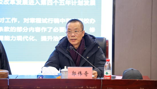 总校监郭伟奇从推进现代大学制度建设,完成章程文本修订工作;参与干部选聘工作,提高学校选人用人公信度;守护办学理念,推动全面提高人才培养质量;维护章程执行,保障决策程序运行规范;聚焦重要工作,助力各项工作落实见效等五个方面总结了监察委本学期工作的具体举措,反思了在发挥作用不够到位,监督检查抓手不实,监督检查不够深入细致等方面存在的问题,表达了要进一步提升监督治理的效能,促进学校各项事业取得更大的进步和发展的决心。