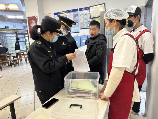 行政处副处长邵海波、学校食品安全总监刘庆奇、食堂负责人傅武君的陪同下,检查组人员对学校食堂、经营店铺加工操作区域、从业人员健康管理、“三防”设施、储存仓库等重点部位、重点环节进行全面、深入细致的排查。