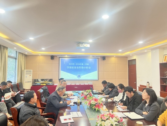 3月14日,我校召开了校园安全形势分析会,就校园安全管理方面存在的薄弱环节和风险点进行了重点分析,并探讨了具体改进措施。学校党委副书记、学保处处长曹云林、党委书记助理、校武装部部长卢建兵、行政处副处长兼学保处副处长邵海波、校团委书记兼学保处副处长杨央、校心理咨询室主任黄璐、各二级学院党总支正、副书记参加了会议,会议由学保处副处长刘洪伟主持。