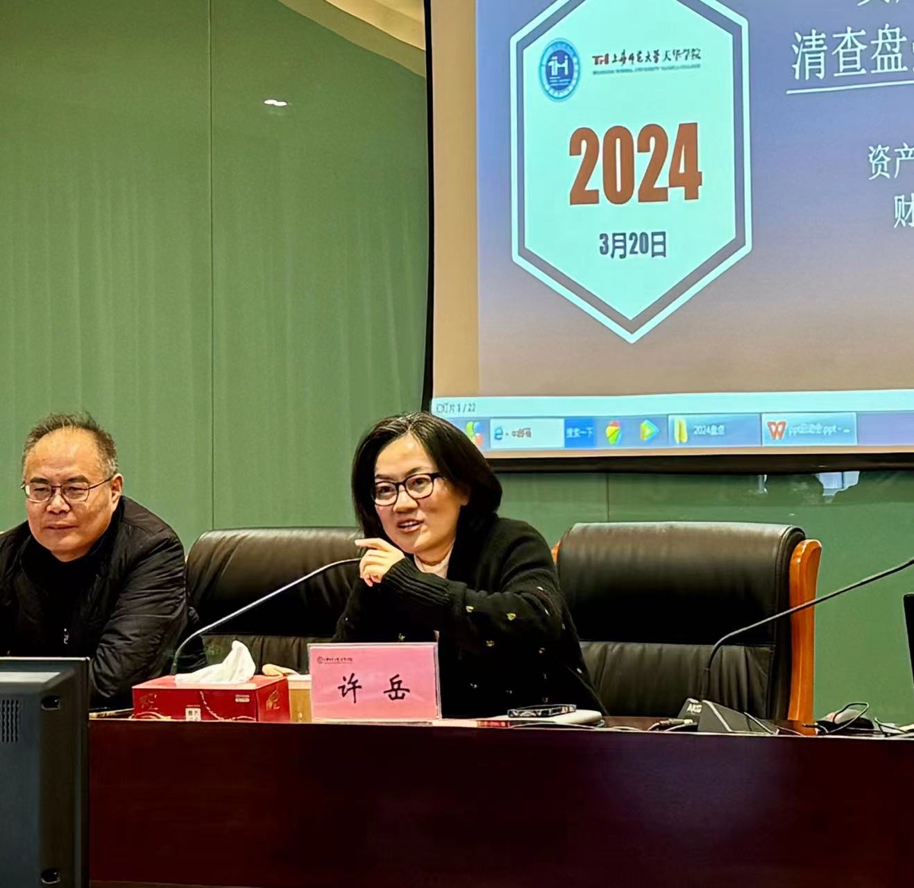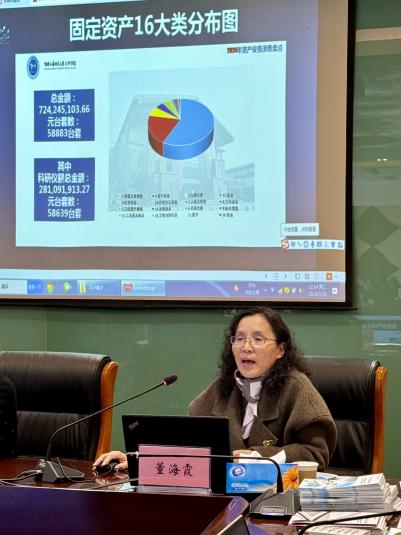 会议首先由资产设备处董海霞副处长就2024年资产设备盘点工作从八个方面进行了详细的部署和讲解。(一)盘点目的:确保固定资产帐物实相符,科学优化学校资产配置。(二)盘点基准日:截止2023年12月31日之前入账的固定资产。(三)盘点时间:2024年3月20日—2024年6月20日。(四)盘点范围:购置资产、被赠与资产、自制设备等所有固定资产(图书除外)。(五)盘点责任:专属设备,专人保管。公共设备,资产管理员保管。实验实训室设备,实验实训室管理员保管。(六)盘点比重:自查(100%)、抽查(量多部门≥2%、量少部门≥5%)、全核(100%)。(七)盘点阶段:分为五个阶段,分别是自查(2024.3.20-2024.4.10)、抽查(2024.3.27-2024.5.17)、调账(2024.5.1-2024.5.31)、汇总(2024.6.1-2024.6.20)、交流(2024年6月中下旬)。(八)盘点要求:采取“以账对物,以物对账”的方法,纠错补漏,确保资产设备数据的准确无误。