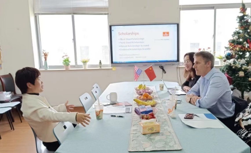 4月2日,美国坎贝尔大学(CAMPBELL UNIVERSITY)国际处Guy Armstrong应邀来访。我校国际交流处处长胡珍热情欢迎了老朋友的到来,并主持洽谈。双方探讨了教师交流与培养、国际课程项目合作以及其他学生交流项目,尤其是联合国证书项目。