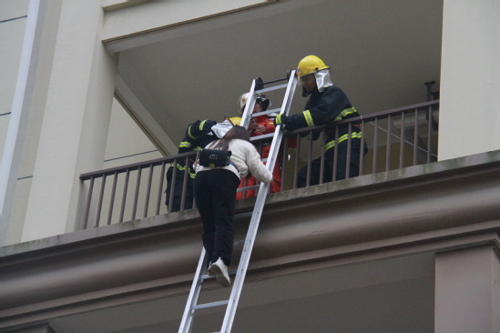 此次消防演练的科目为高层逃生疏散和救援演练,针对学生公寓七号楼(共11层,525间宿舍,住宿学生2100人)进行。除逃生演练外,还进行了5楼阳台消防云梯救援逃生科目演练。整个演练过程井然有序,取得了预期的效果。